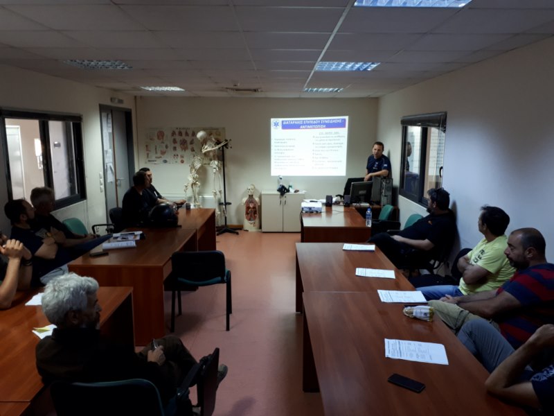 Με ευαισθητοποίηση και μεταδοτικότητα των υπευθύνων του ΕΚΑΒ, κυρίων Πουλίκου Φώτιου και Βλάχου Γεωργίου, συζητήθηκαν και παρουσιάστηκαν μέσω διάλεξης και πρακτικής άσκησης οι κάτωθι θεματικές ενότητες: